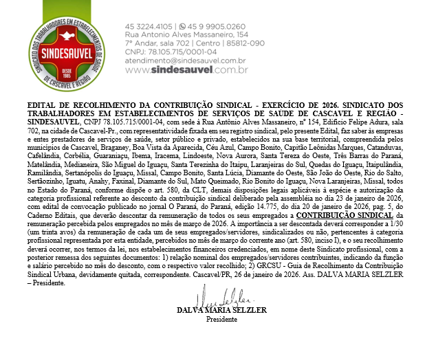 Edital - Recolhimento - Contribuição Sindical 2026